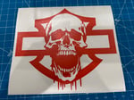 This decal features a bold, menacing skull seamlessly integrated with the iconic HD Bar and Shield creating a design that radiates attitude and power. Perfect for riders who embrace the rebellious spirit of the open road.